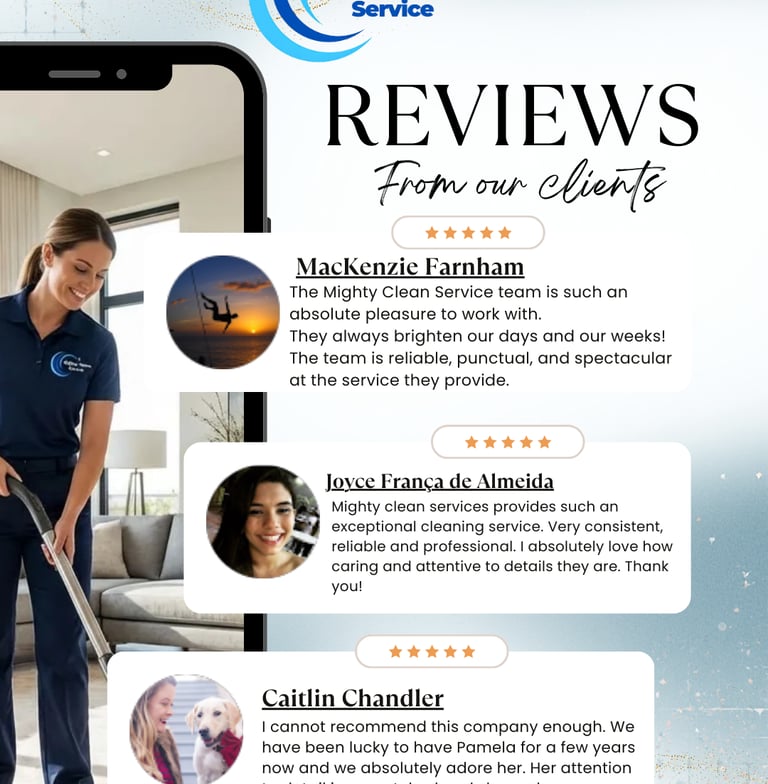 Highly recommend! I moved into my apartment brand new and somehow I think it's cleaner now than when I moved in. Mighty Clean Service thought of everything, organized the little things I accidentally left out, and everything just feels more comfortable now. I struggle to stay on top of things. I don't have a fancy place, but I needed the extra help, and I'm excited to have found this team. Thank you so much.